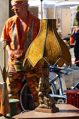 Not sure what fascinated me more - the lampshade or the vendor's outfit. |